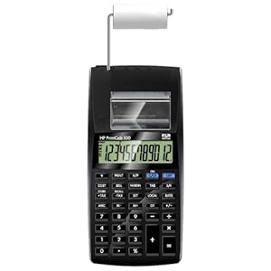 Stylish easy-to-use desktop calculatorProduct InformationIdeal for use in an office environment or accounting office the HP PrintCalc 100 Calculator has all the business functions you need plus printing capability. Quickly figure sales tax margin currency conversion grand totals and much more. The large 12-digit screen makes your work easy to view; the printer makes it easy to keep a permanent record.Product FeaturesLarge 12-digit angled displayPrints receiptsQuickly figure sales tax margins currency conversions and moreDo office tax or retail calculations with the intuitive layoutCarry with you in your backpack or briefcaseHorizontal design measures 7.9 x 3.8 x 1.7" (L x W x H)Battery or optional AC Adapter (6V/300mA AC Adapter not included)SpecificationsKeys and Switches:0-9 Number KeysDecimal Point KeyPower On / Clear Entry / Clear KeyPower OffArithmetic KeysEqual KeyPercentage KeySign Change KeyDecimal Point SelectorRounding Selector KeyGrant total KeyPaper Feed KeyData Printout KeyPrint Mode SelectorMemory Plus KeyMemory Minus KeyMemory Recall Key / Memory Clear KeyCurrency Exchange KeyExchange Rte Setting Key / Tax Rate Setting KeyAdd Tax KeyDeduct Tax KeySelling Price / Cost / Margin KeyIncludesHP PrintCalc 100 Printing Calculator4 'AA' Batteries * (AC Adapter Not Included)Printing Paper (starter size)User's Guide* NOTE: Batteries are included but not guaranteed.